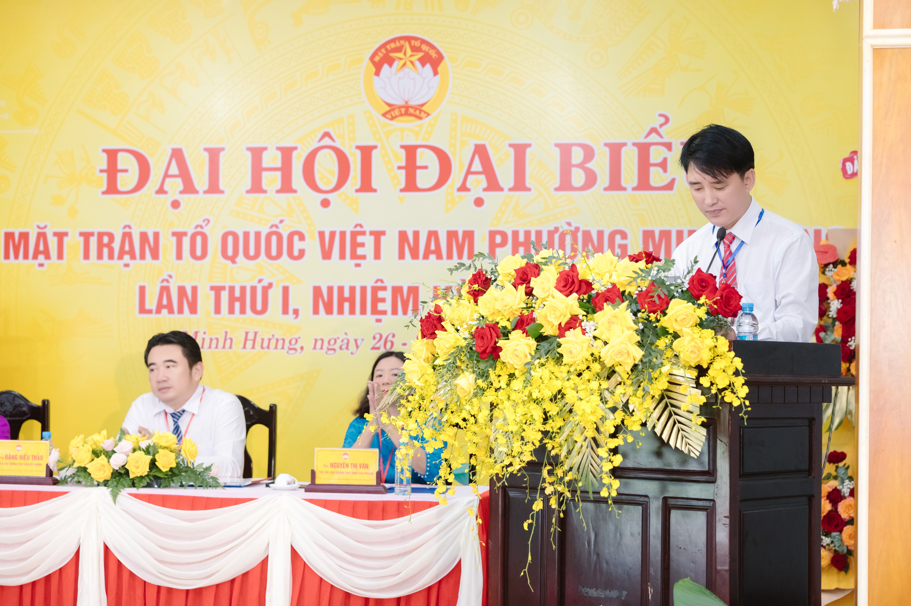 Phát biểu tại đại hội, Phó Chủ tịch Ủy ban MTTQ Việt Nam tỉnh Đồng Nai Nguyễn Tất Độ ghi nhận, biểu dương những kết quả đạt được của MTTQ Việt Nam phường Minh Hưng nhiệm kỳ qua; đồng thời đề nghị MTTQVN phường cần tiếp tục đổi mới nội dung, phương thức hoạt động; tăng cường công tác giám sát, phản biện xã hội; củng cố niềm tin của nhân dân, góp phần xây dựng Đảng, chính quyền ngày càng trong sạch, vững mạnh.