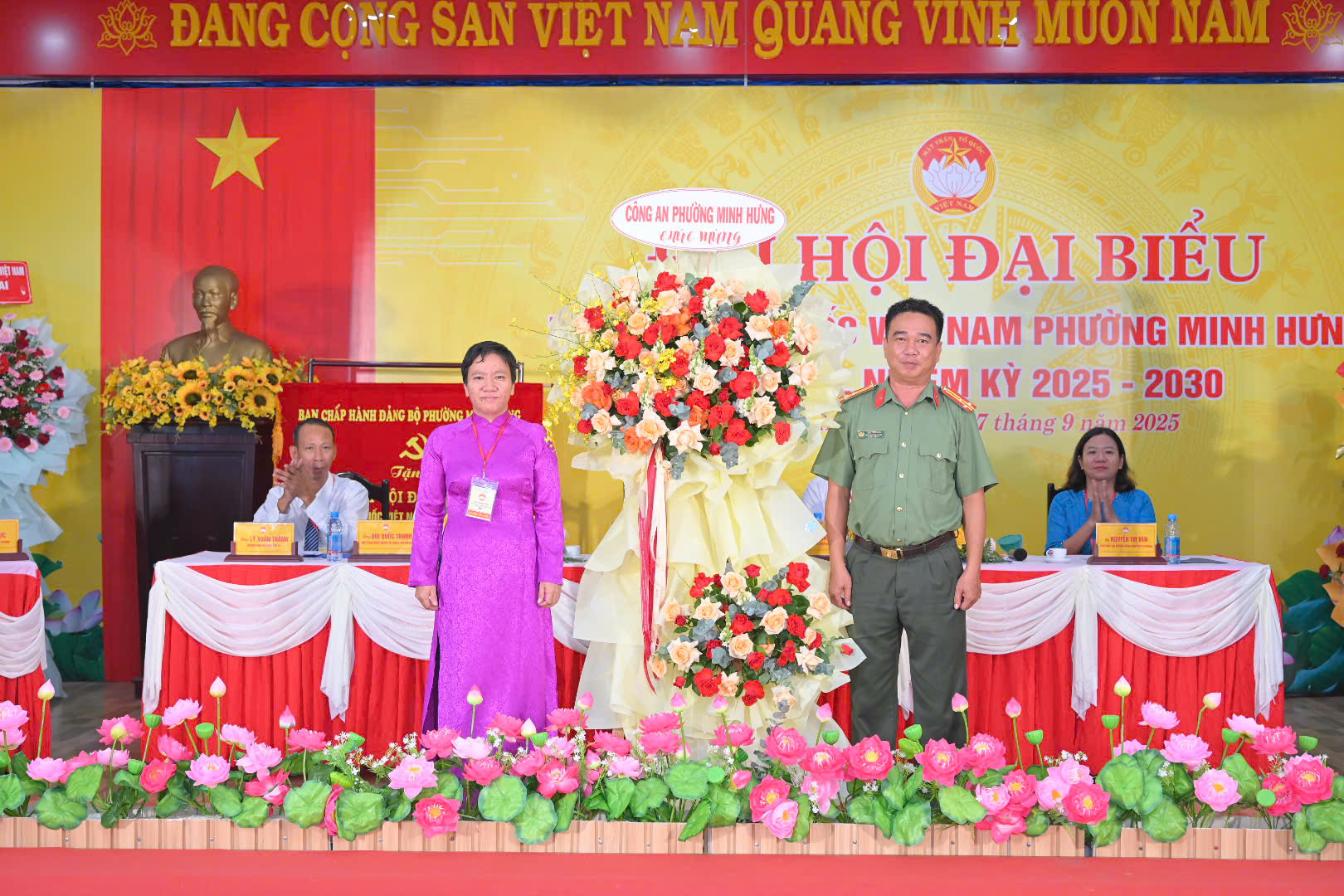 Đại hội đã hiệp thương cử 60 Ủy viên Ủy ban MTTQ Việt Nam phường Minh Hưng lần thứ I, nhiệm kỳ 2025-2030. Bà Đinh Thị Tuyết Sơn tái đắc cử chức Chủ tịch Ủy ban MTTQ Việt Nam phường nhiệm kỳ mới. Đại hội cũng hiệp thương cử 01 đại biểu chính thức dự Đại hội Đại biểu MTTQ Việt Nam tỉnh Đồng Nai lần thứ I, nhiệm kỳ 2025-2030.