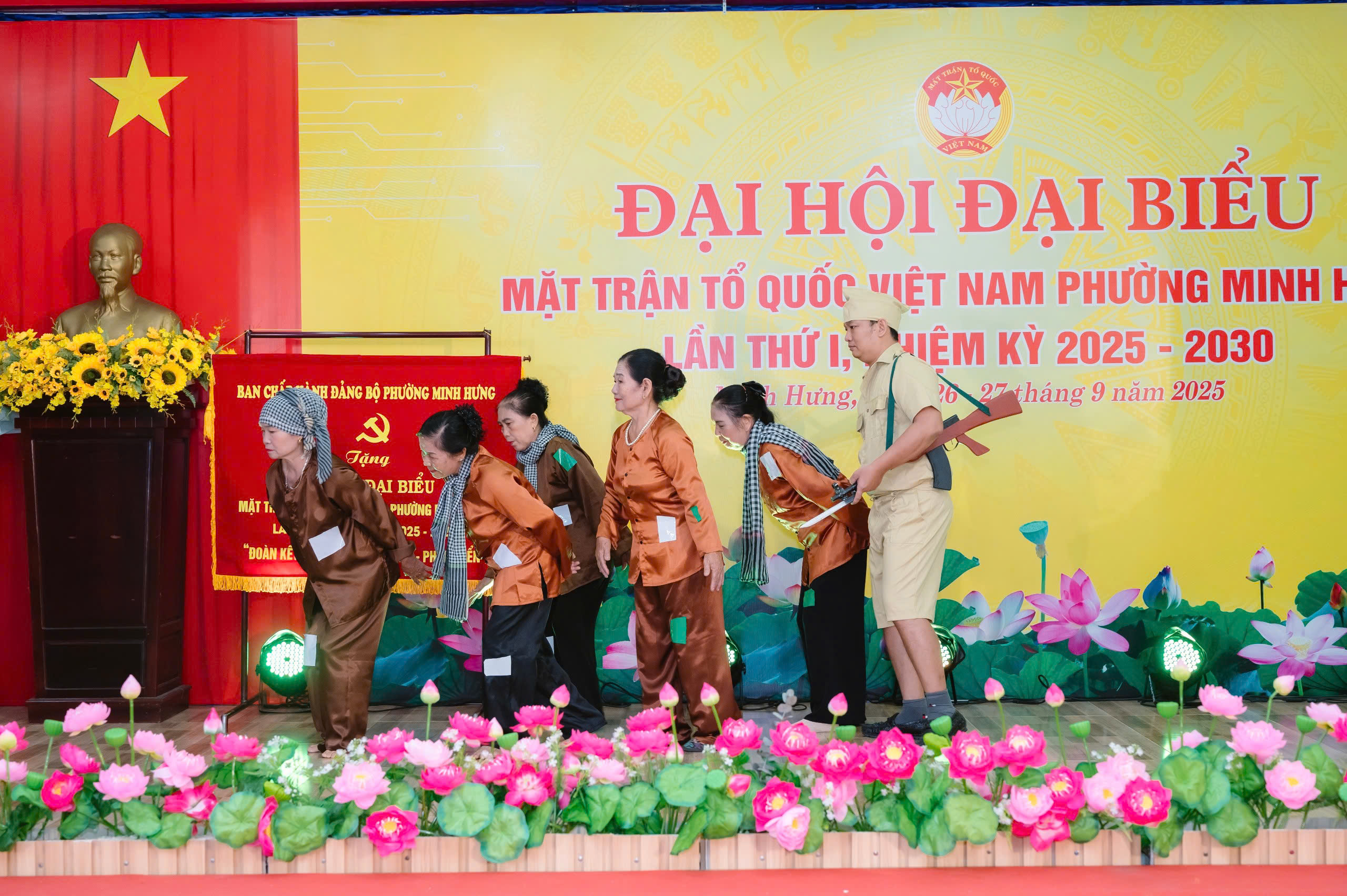 Phường Minh Hưng được thành lập trên cơ sở sáp nhập 2 đơn vị hành chính: phường Minh Hưng và phường Minh Long với 20 khu dân cư. Nhiệm kỳ 2024-2029, MTTQVN phường đã phát huy tốt vai trò trong công tác tuyên truyền vận động, tập hợp, đoàn kết nhân dân cùng tham gia thực hiện các phong trào thi đua yêu nước, cuộc vận động. Phong trào toàn dân đoàn kết xây dựng đời sống văn hóa gắn với công tác đền ơn đáp nghĩa, bảo vệ môi trường, khuyến học - khuyến tài, bảo vệ an ninh Tổ quốc được MTTQVN, các tổ chức thành viên, các cơ quan chức năng phối hợp triển khai thực hiện đồng bộ, đạt kết quả cao. Trong năm 2024, toàn phường có 20/20 KDC đạt danh hiệu KDC văn hóa (tỷ lệ 100%) và trên 98% số hộ gia đình đạt danh hiệu “Gia đình văn hóa”; 98% số hộ gia đình không có người phạm tội, mắc tệ nạn xã hội và vi phạm pháp luật về trật tự an toàn giao thông; 100% khu dân cư đạt tiêu chuẩn “An toàn về an ninh trật tự”; xây dựng được một số mô hình tiêu biểu về bảo vệ môi trường, phòng chống tội phạm, giữ gìn an ninh trật tự trong cộng đồng… vượt chỉ tiêu Nghị quyết đề ra. Tỷ lệ người dân sử dụng điện đạt 99,95%, tỷ lệ tiếp cận internet đạt 100%; các nhu cầu về chăm sóc sức khỏe, sinh hoạt văn hóa, giải trí được đảm bảo…