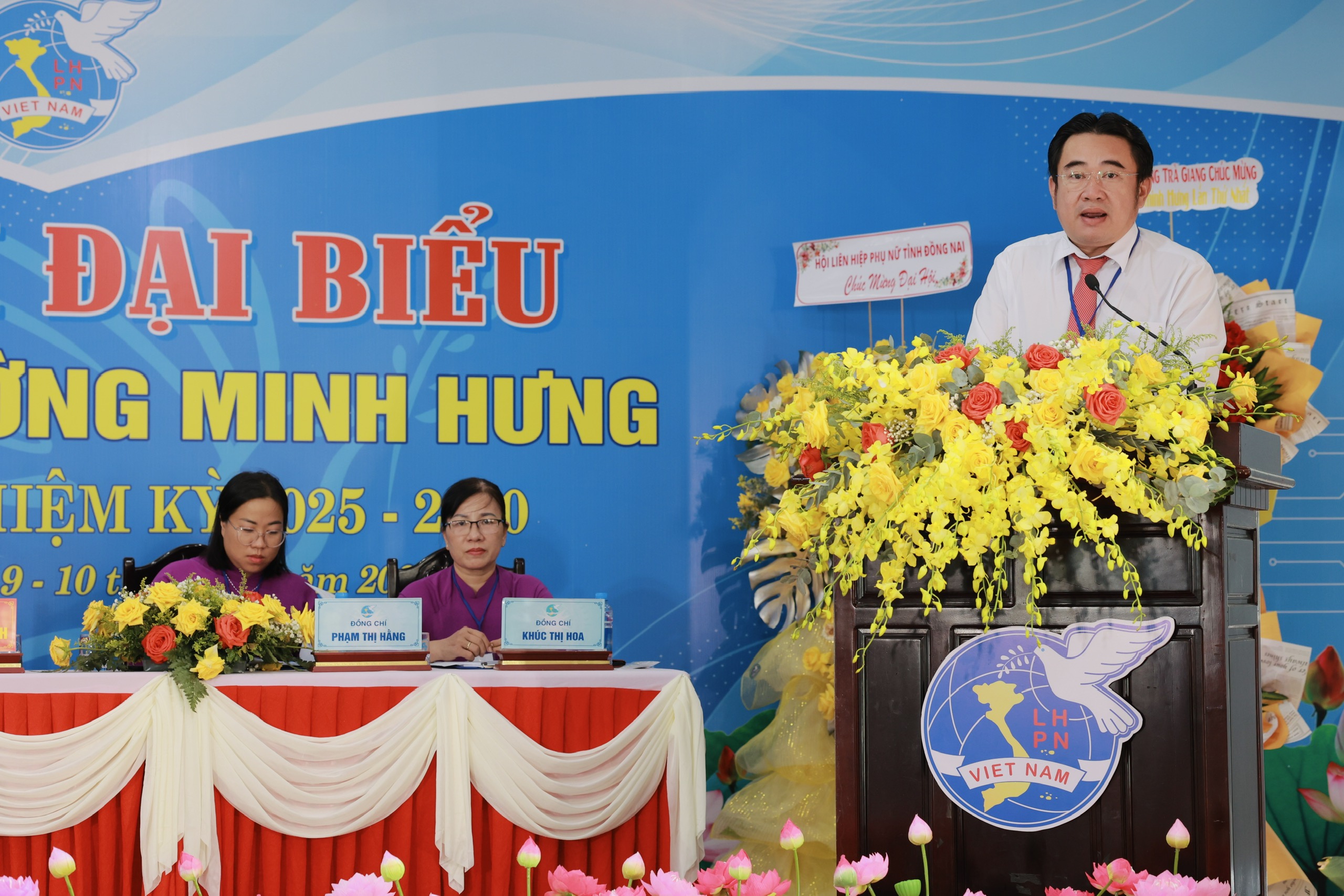 Phát biểu chỉ đạo tại đại hội, đồng chí Đặng Hiếu Thảo - Phó Bí thư thường trực Đảng ủy phường biểu dương những kết quả Hội Phụ nữ phường Minh Hưng đạt được trong thời gian qua. Đồng chí đề nghị, Hội Phụ nữ phường tiếp tục đổi mới nội dung, phương thức hoạt động, phát huy tinh thần đoàn kết, sáng tạo, góp phần xây dựng phường Minh Hưng ngày càng phát triển, giàu đẹp, văn minh. Với phương châm "Ở đâu có phụ nữ ở đó có hoạt động hội", Hội Phụ nữ phường Minh Hưng tiếp tục đẩy mạnh công tác hỗ trợ phụ nữ phát triển kinh tế, xóa đói giảm nghèo; nâng cao chất lượng giám sát, phản biện xã hội để khẳng định vai trò đại diện, bảo vệ quyền và lợi ích hợp pháp chính đáng của phụ nữ và trẻ em trên địa bàn phường.