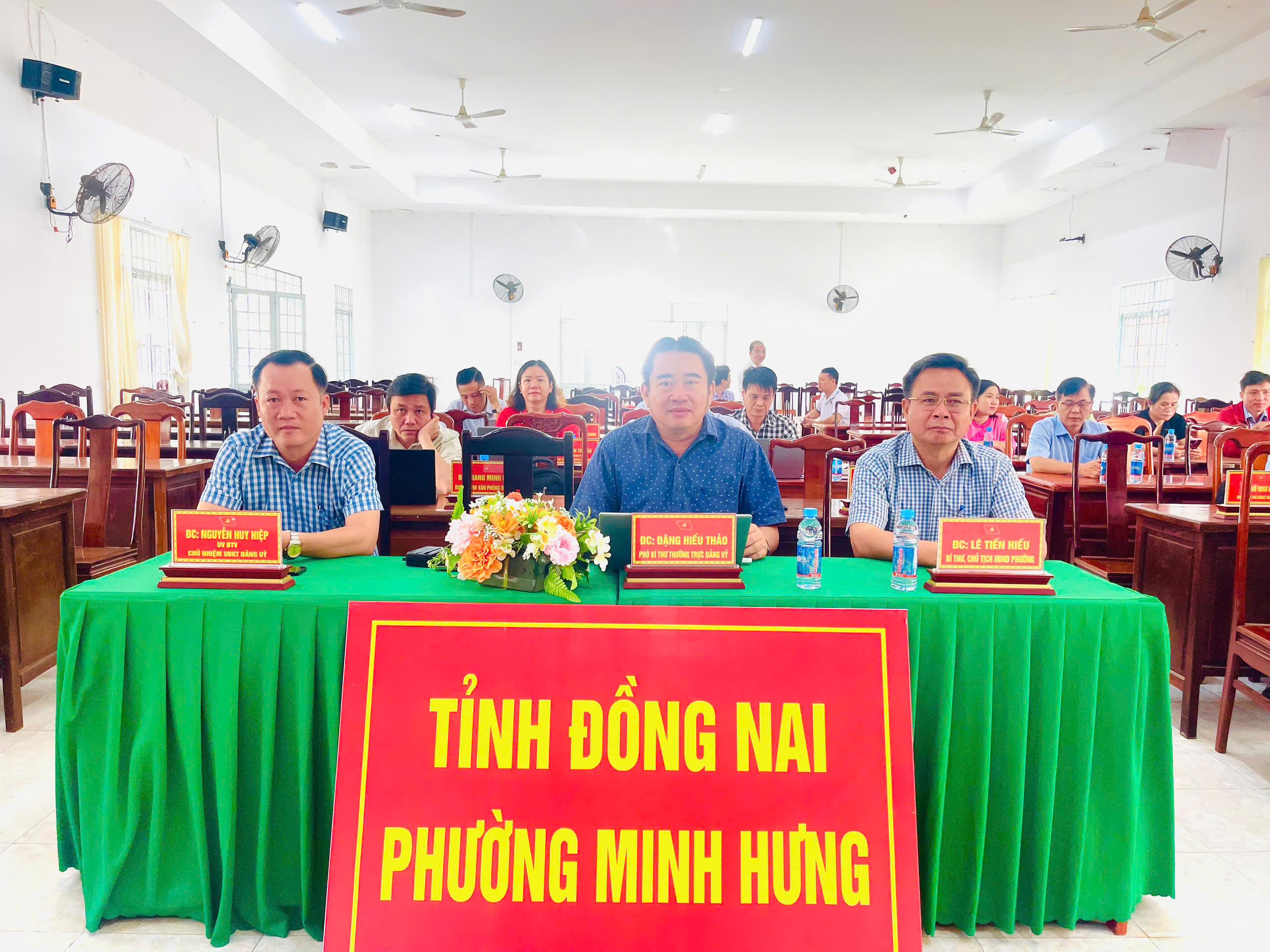 Dự tại điểm cầu Đảng ủy Phường Minh Hưng có đồng chí Lê Tiến Hiếu - Bí thư Đảng ủy, Chủ tịch HĐND phường; đồng chí Đặng Hiếu Thảo - Phó Bí thư Thường trực Đảng ủy; đồng chí Lê Khắc Đồng - Phó Bí thư Đảng ủy, Chủ tịch UBND phường; các đồng chí Ủy viên Ban chấp hành Đảng bộ phường; lãnh đạo, cán bộ và chuyên viên Ban Xây dựng Đảng, Văn phòng Đảng ủy, Ủy viên Ủy ban kiểm tra Đảng ủy; Chủ tịch, phó Chủ tịch Ủy ban MTTQ phường; Trưởng, Phó Phòng Văn hóa - xã hội, phòng Kinh tế phường; Chánh Văn phòng, Phó Chánh Văn phòng HĐND - UBND xã; trưởng, phó các tổ chức chính trị xã hội phường.