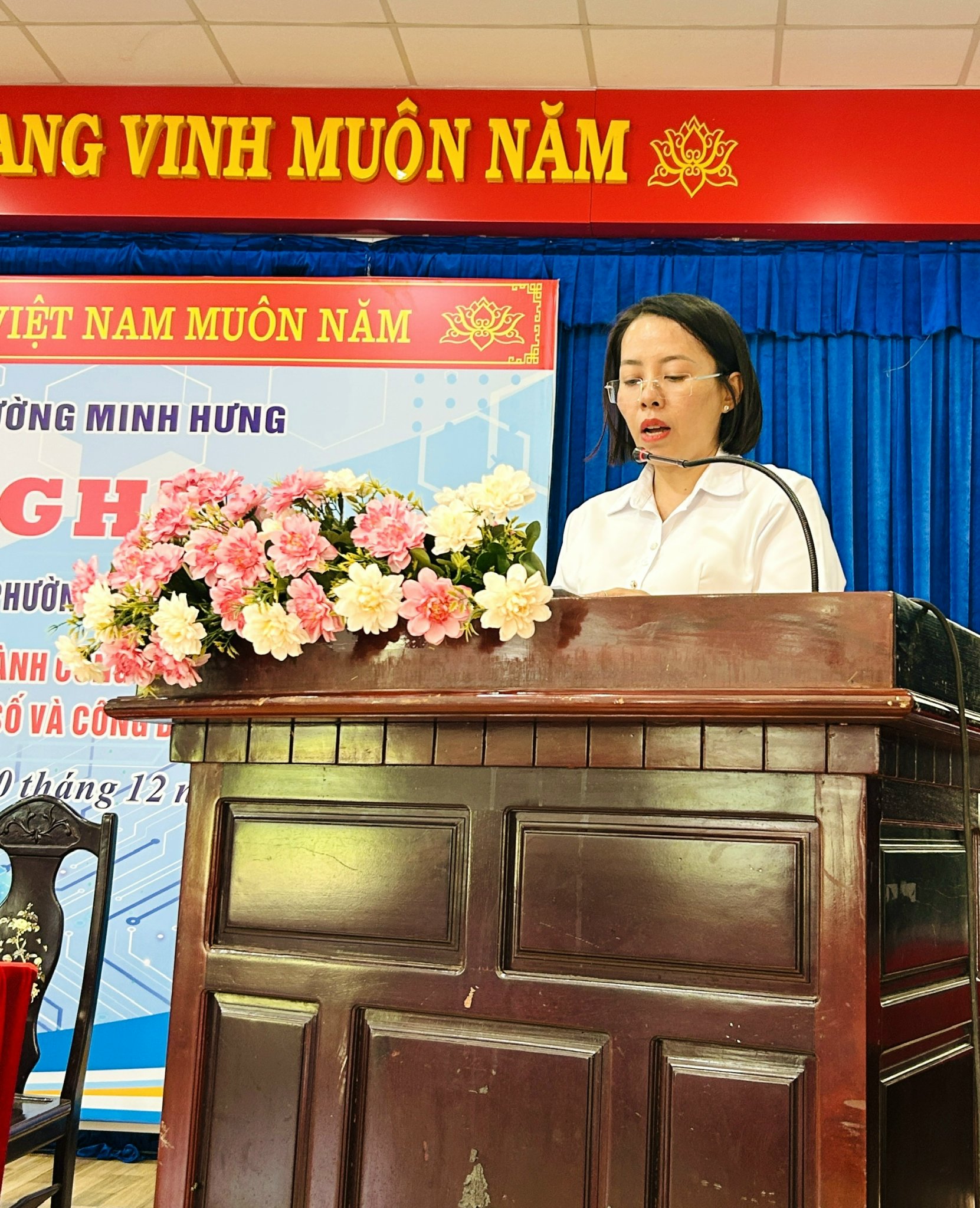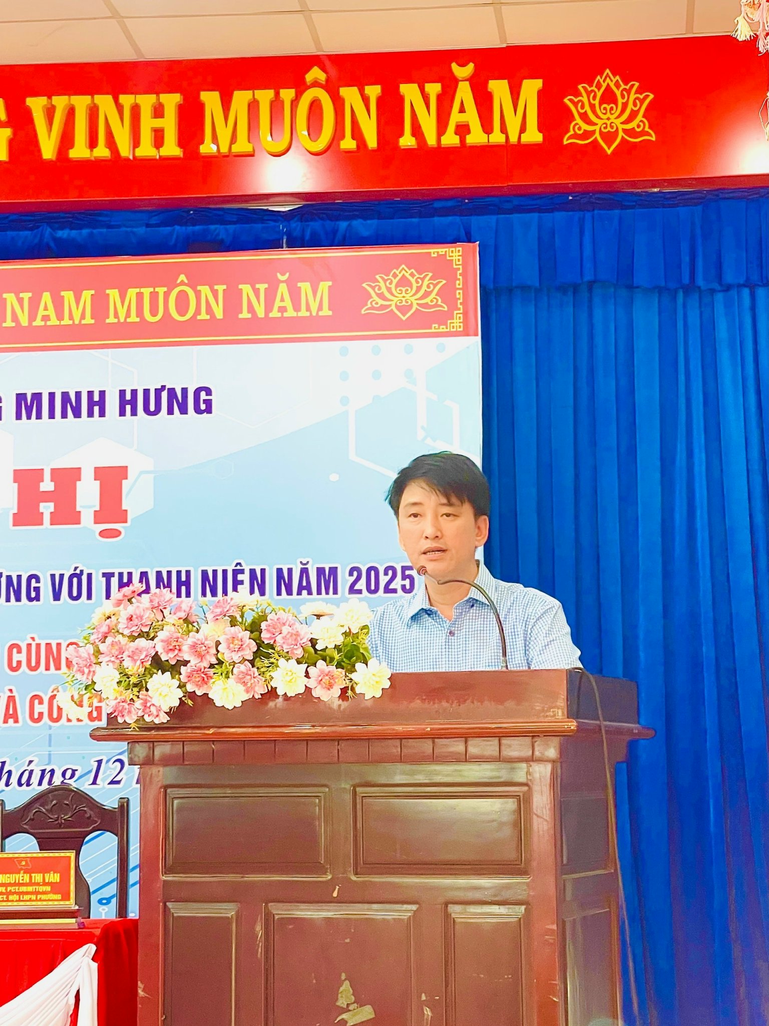 Tại hội nghị, ông Đặng Hiếu Thảo - Phó Bí thư Thường trực Đảng ủy phường Minh Hưng đã ghi nhận và đánh giá cao vai trò, tinh thần xung kích, sáng tạo của đoàn viên, thanh niên trong thời gian qua, đặc biệt là trong việc tham gia cùng chính quyền hai cấp xây dựng chính quyền số và hình thành công dân số. Đồng chí nhấn mạnh, chuyển đổi số là nhiệm vụ trọng tâm, xuyên suốt, đòi hỏi sự vào cuộc đồng bộ của cả hệ thống chính trị, trong đó thanh niên giữ vai trò nòng cốt, tiên phong trong ứng dụng công nghệ thông tin, nâng cao kỹ năng số, tuyên truyền, hỗ trợ người dân tiếp cận và sử dụng các dịch vụ công trực tuyến. Ông đề nghị Chủ tịch UBND phường, các ban, ngành, đoàn thể tiếp tục tạo điều kiện, cơ chế thuận lợi để thanh niên phát huy trí tuệ, nhiệt huyết, đồng thời mong muốn thanh niên Minh Hưng không ngừng học tập, rèn luyện, chủ động đồng hành cùng chính quyền hai cấp, góp phần xây dựng nền hành chính hiện đại, minh bạch, phục vụ Nhân dân ngày càng tốt hơn.