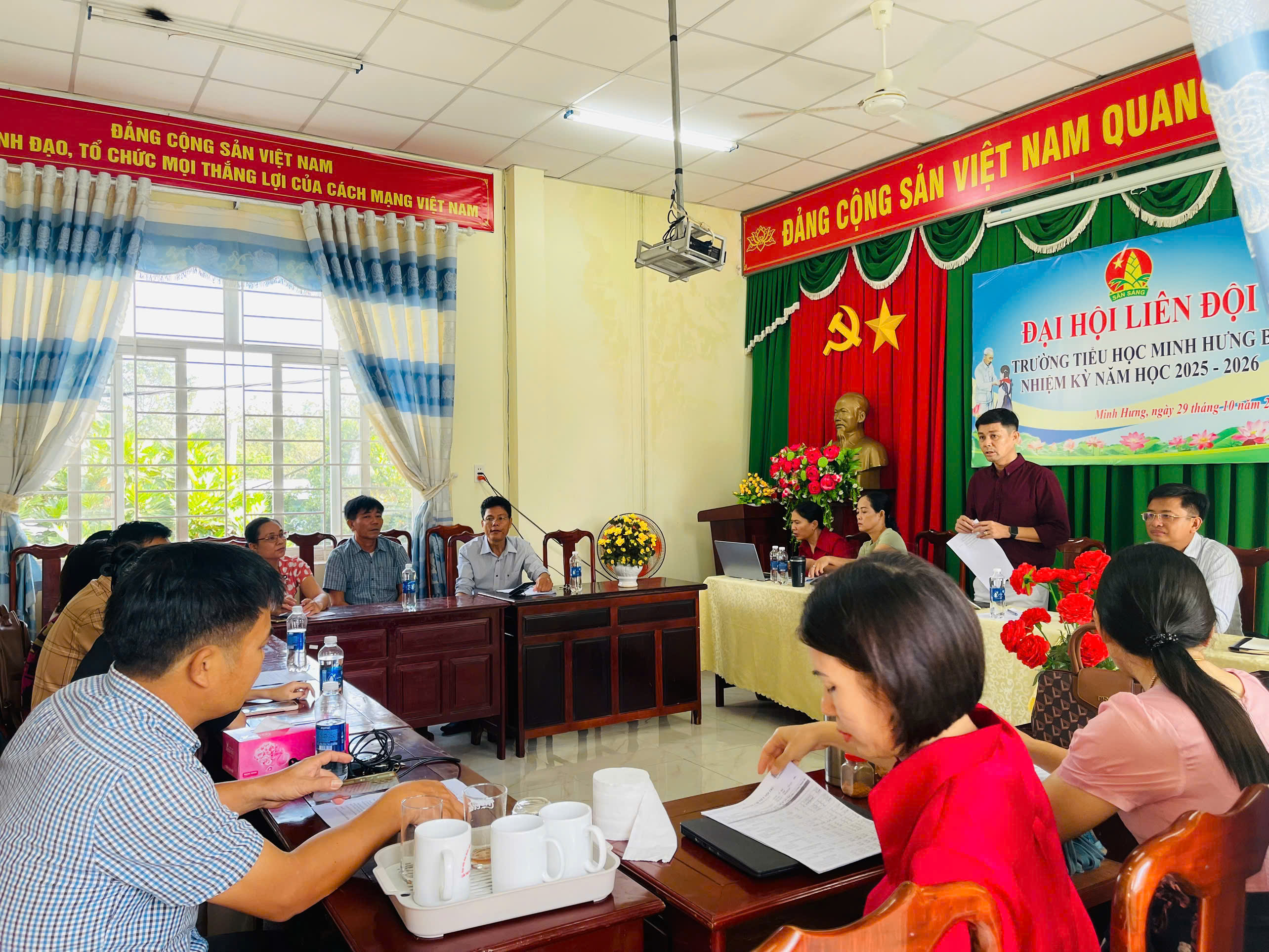 Phát biểu tại buổi sinh hoạt, đồng chí Lê Khắc Đồng ghi nhận và biểu dương tinh thần trách nhiệm, tinh thần xây dựng của các đảng viên trong chi bộ. Đồng chí đề nghị Chi bộ Trường Tiểu học Minh Hưng B tiếp tục nêu cao vai trò tiên phong, gương mẫu của mỗi đảng viên, thực hiện tốt nhiệm vụ chính trị được giao, đặc biệt là triển khai hiệu quả Nghị quyết số 71-NQ/TW ngày 22/8/2025 của Bộ Chính trị về đột phá phát triển giáo dục và đào tạo.