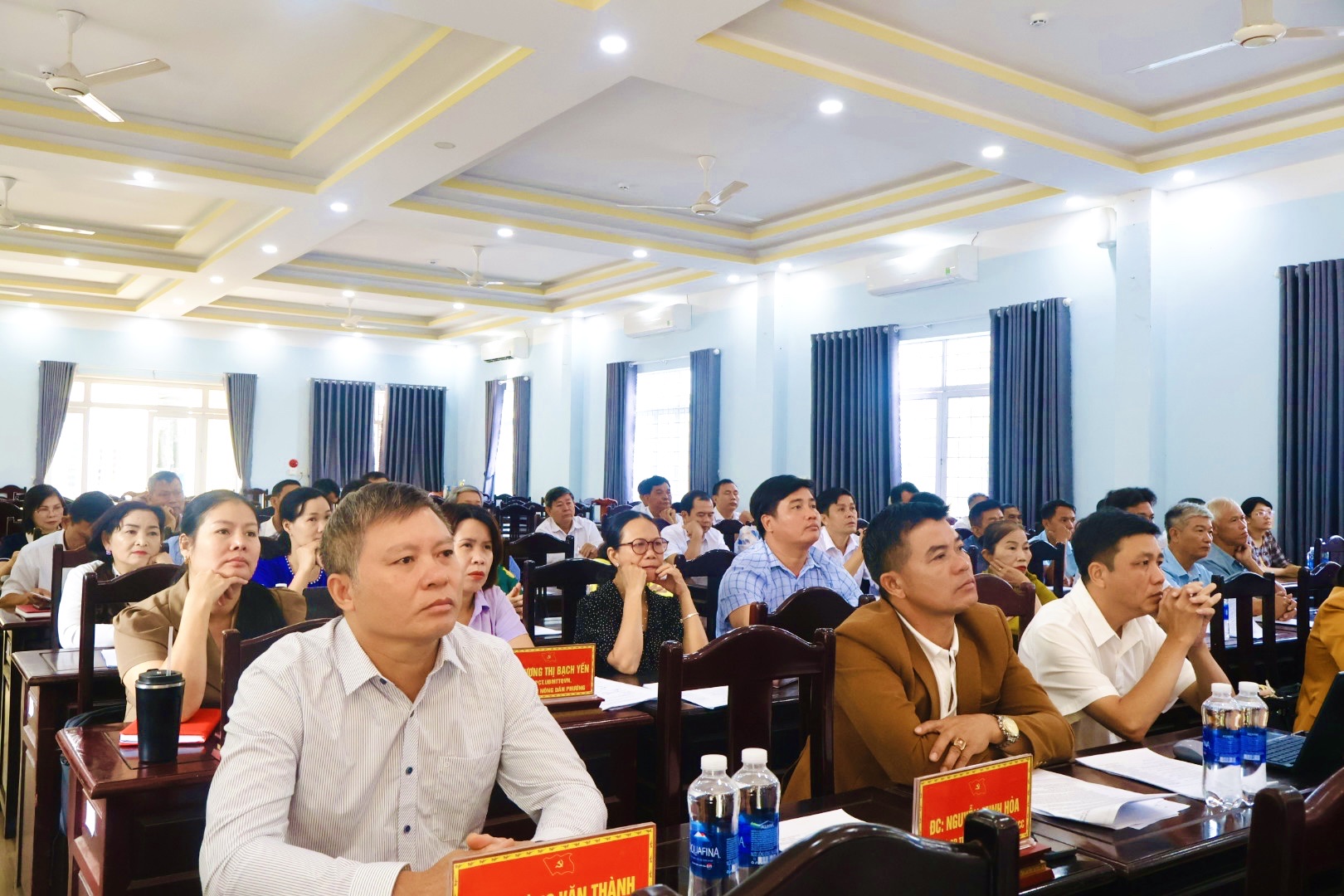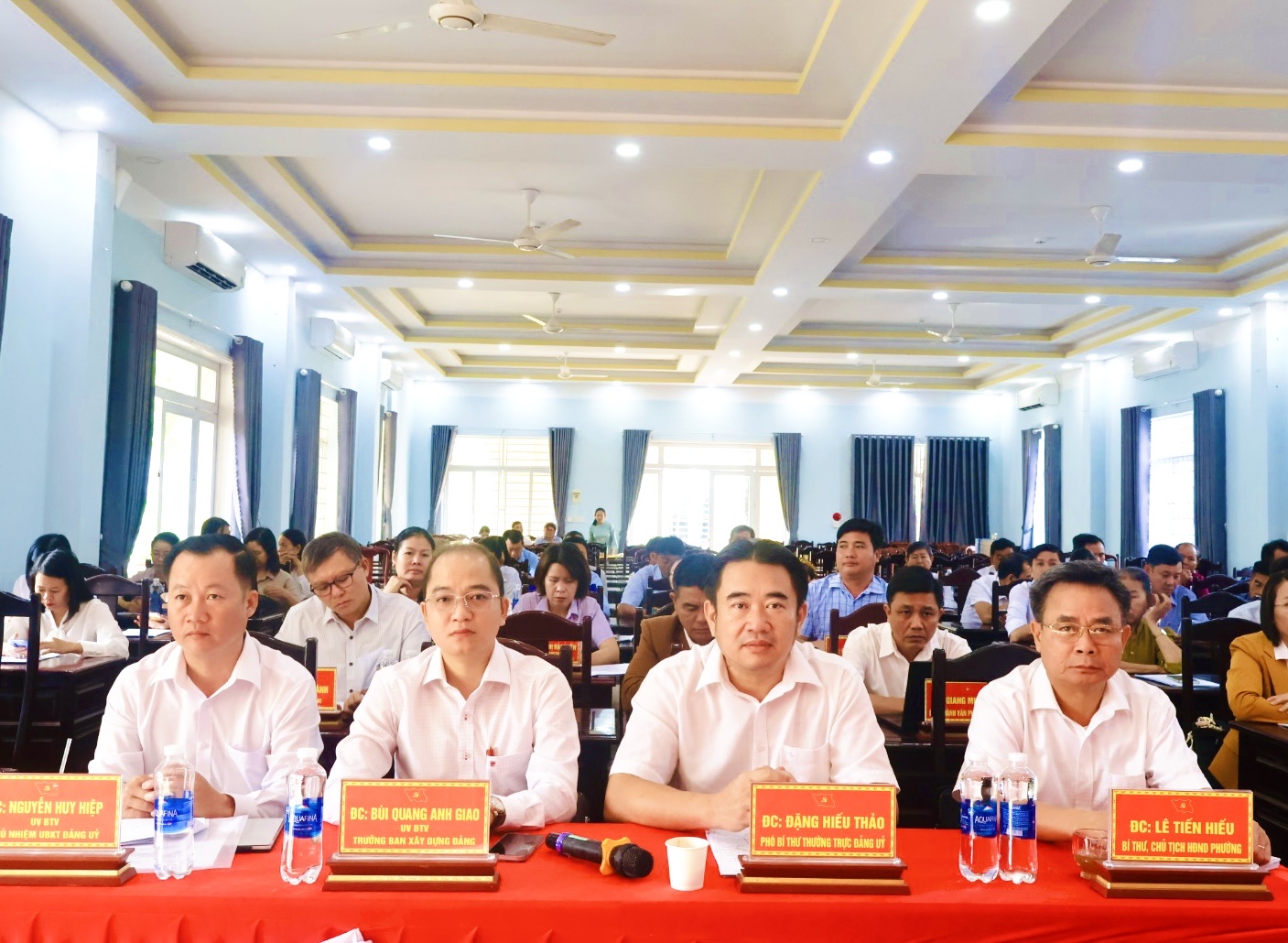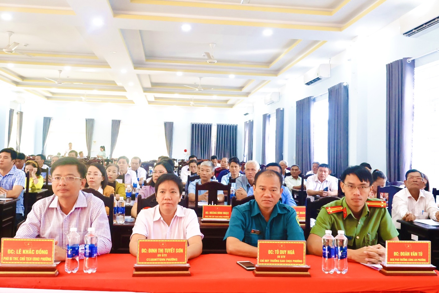 Chủ trì hội nghị có đồng chí Lê Tiến Hiếu - Bí thư Đảng ủy, Chủ tịch HĐND phường, đồng chí Đặng Hiếu Thảo - Phó Bí thư thường trực Đảng ủy, đồng chí Lê Khắc Đồng - Phó Bí thư Đảng ủy, Chủ tịch UBND phường. cùng dự có đồng chí Đinh Thị Tuyết Sơn - Chủ tịch UBMTTQVN phường, các đồng chí trong Ban Thường vụ, Ban Chấp hành Đảng bộ phường, lãnh đạo HĐND, UBND, UBMTTQ Việt Nam phường, trưởng, phó các cơ quan, ban, ngành, đoàn thể, Bí thư Chi bộ các khu phố trên địa bàn phường.