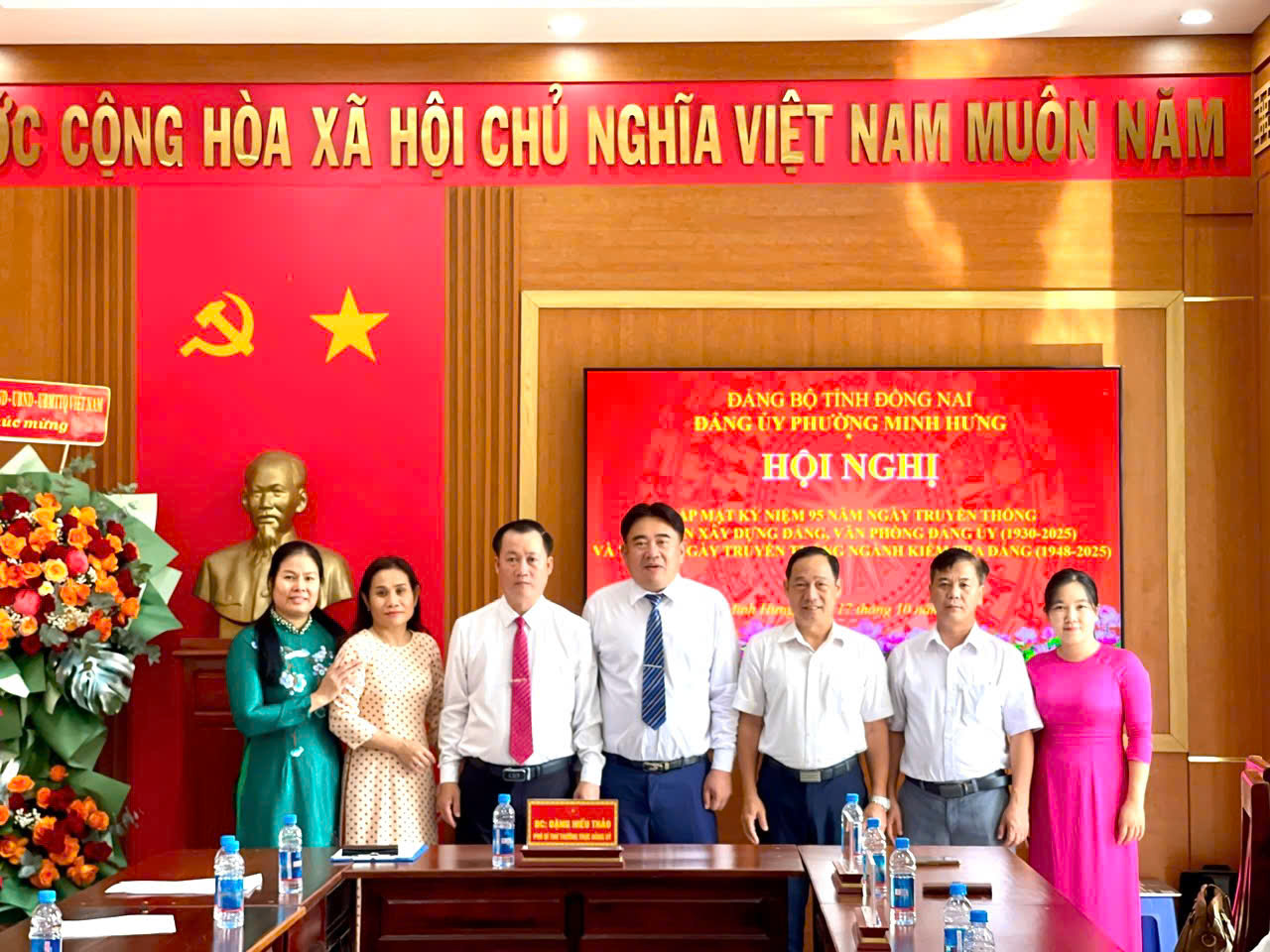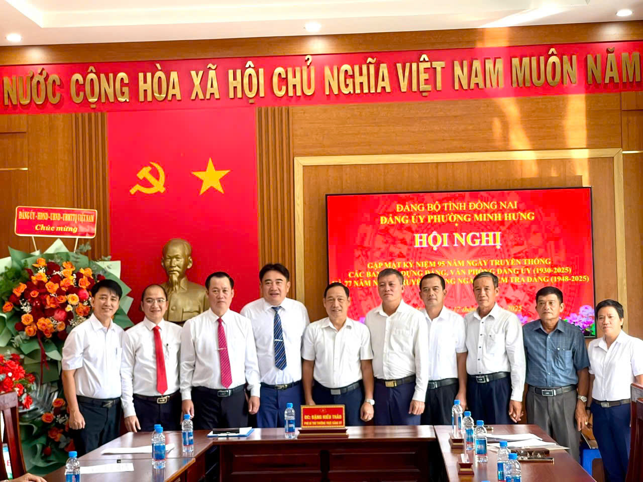Cũng tại buổi họp mặt, các đồng chí lãnh đạo ngành xây dựng Đảng, văn phòng cấp ủy và ngành kiểm tra Đảng cũng đã gửi đến các đồng chí nguyên Bí thư Thị ủy Chơn Thành; nguyên Bí thư, Phó Bí thư Đảng ủy phường Minh Hưng, phường Minh Long (trước sáp nhập) nhiệm kỳ 2020-2025 những bó hoa tươi thắm, lời tri ân chân thành và sâu sắc nhất, chúc các đồng chí luôn mạnh khỏe, hạnh phúc.